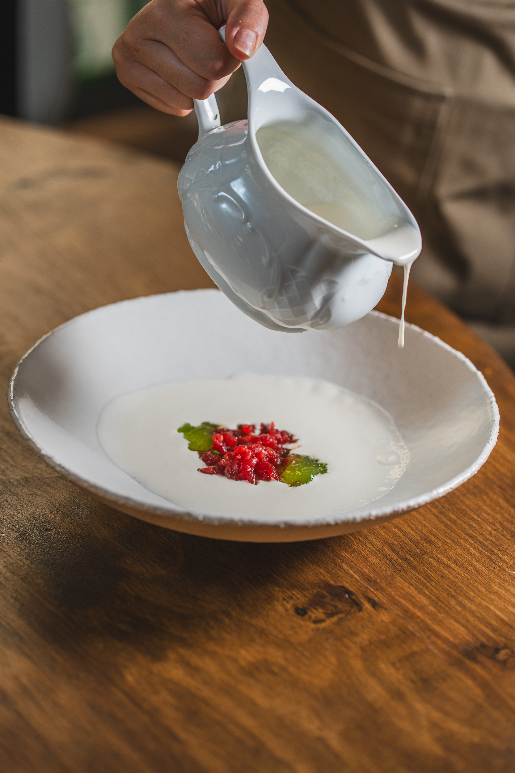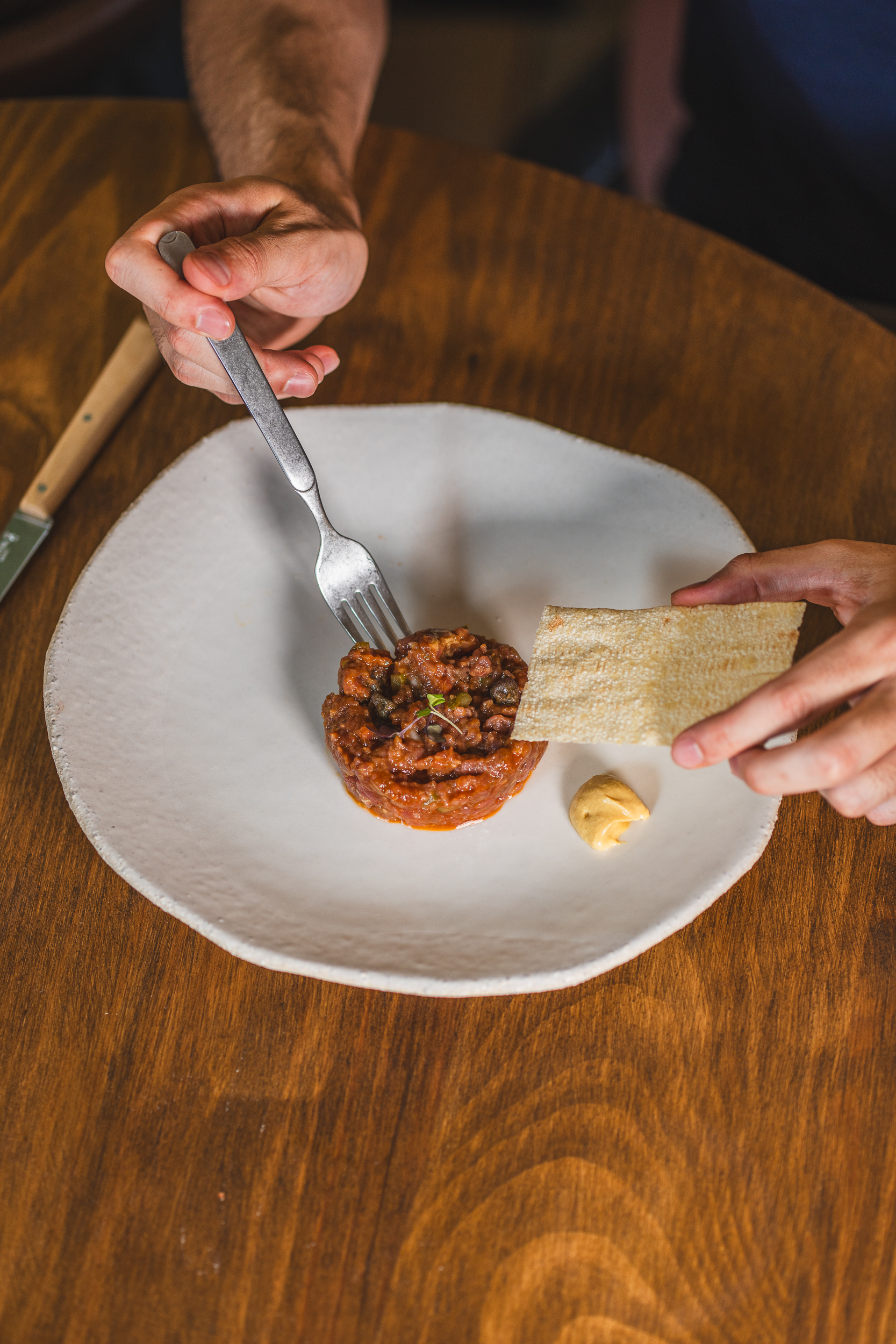 Tartar de salmón con aguacate y emulsión de mostaza y miel