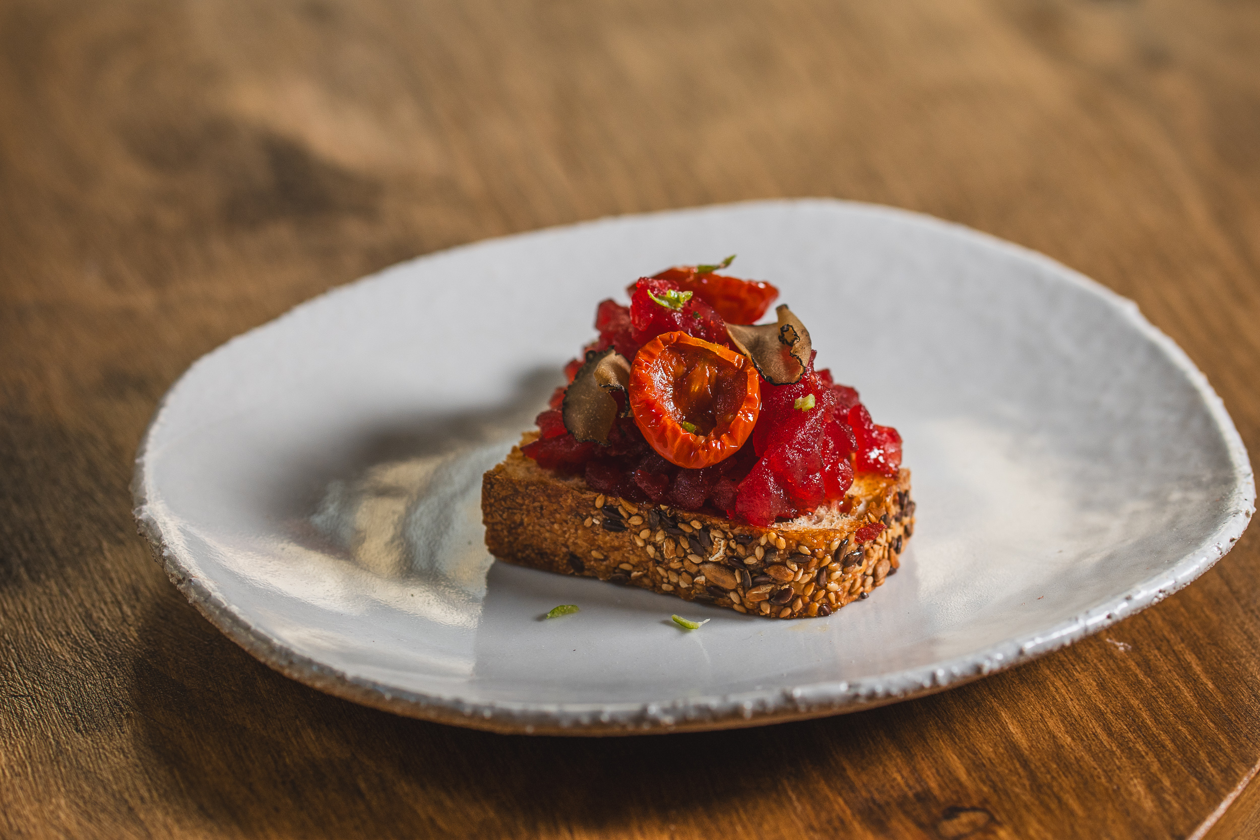 Matrimonio de anchoa y boquerón con pisto manchego y queso ahumado